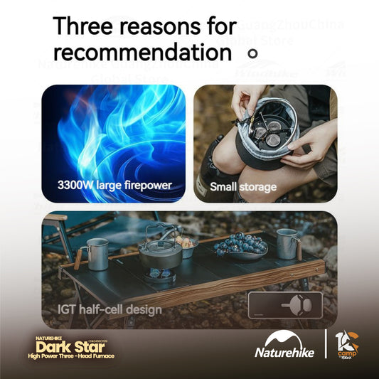 NH100 | NATUREHIKE CNK2450CF019 _ Dark star three burners gas stove | 3300W |