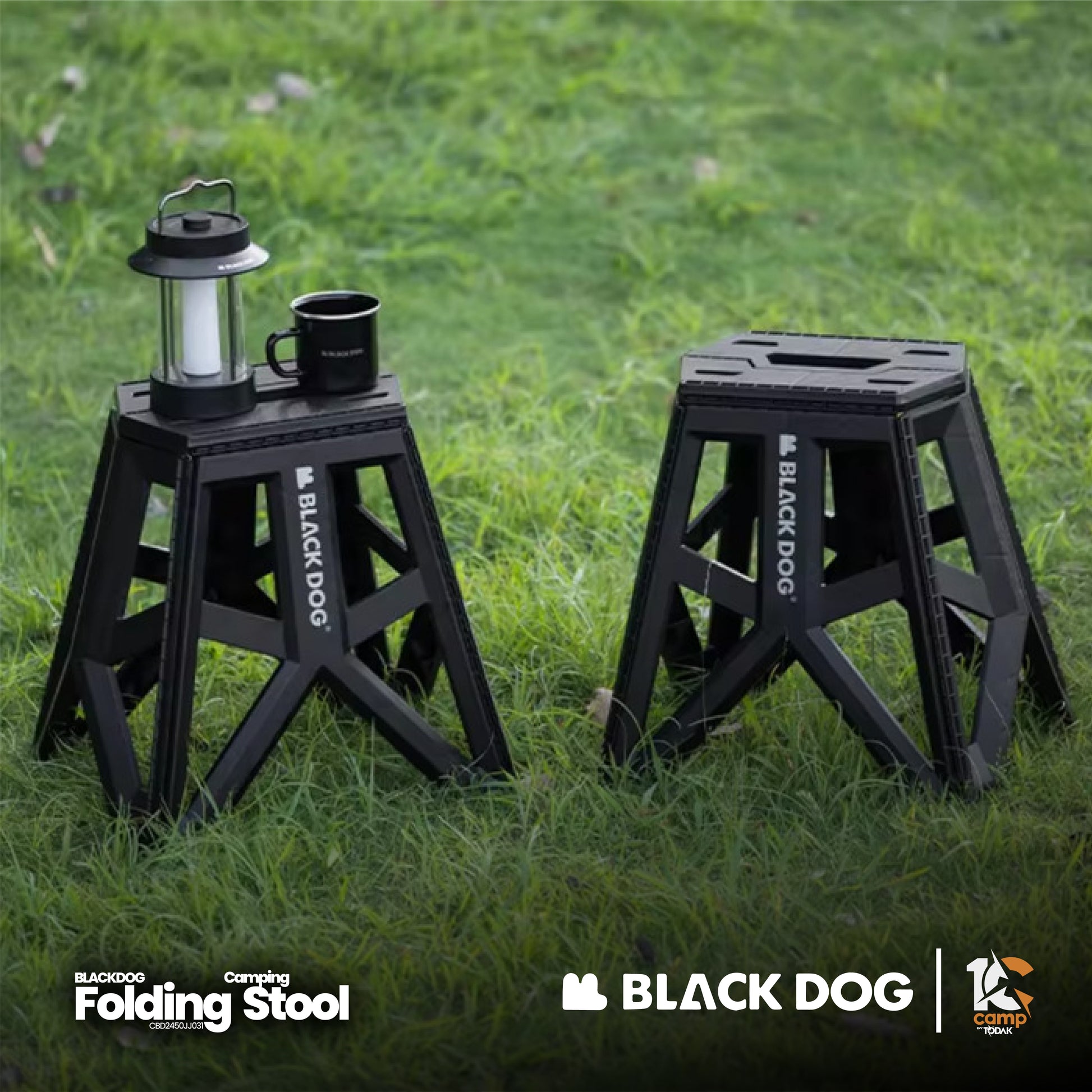 Blackdog CBD2450JJ031 Folding Camping Stool is a portable folding chair that is perfect for various outdoor activities such as camping, picnicking, fishing, or relaxing on the beach. With a modern design and strong PP material, this chair is lightweight, durable, and easy to fold for easy storage and transportation.