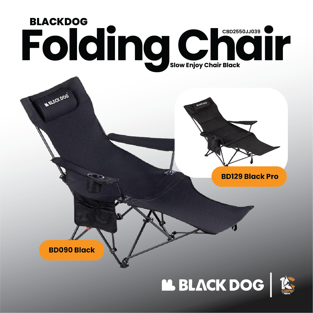 Blackdog Night Black Slow Enjoyment Pro Folding Recliner Chair is a portable chair designed for outdoor relaxation, such as camping or fishing. The chair features an adjustable backrest and a removable footrest, allowing it to be used as a standard chair or a recliner.