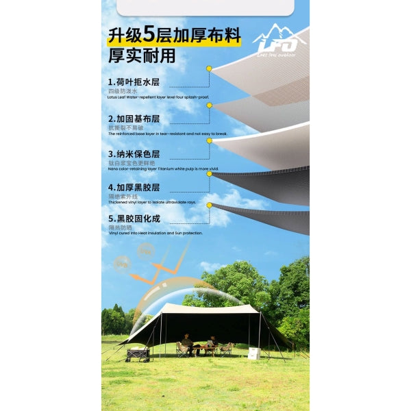Transform your camping experience with the Twin Peaks Flysheet Upgrade! Get ready for more space, more flexibility, and more comfort with our large 900x500x260cm size. No more feeling cramped or confined in your tent. And with a box dimension of 24*24*76cm, it's easy to transport and set up. Choose from two stylish colors, khaki or black, to match your personal taste and stand out in the great outdoors!