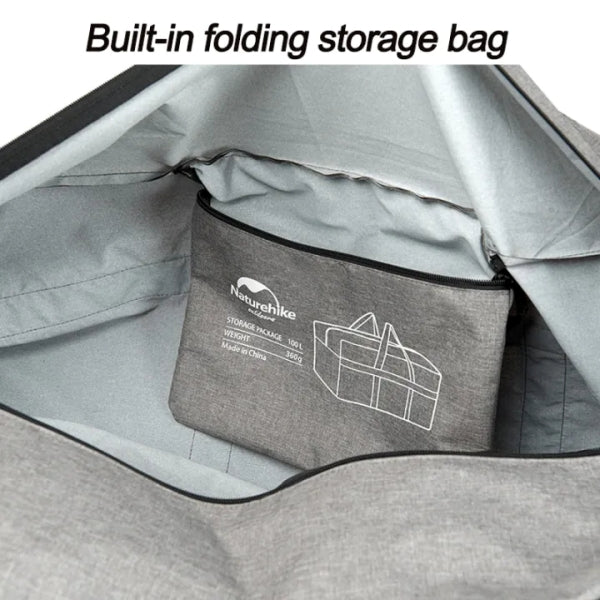 This is the Naturehike Folding Storage Bag, designed for travel and camping. It is a duffel-style bag that comes in two sizes, 45L and 100L, and can be folded into a small pouch for easy storage when not in use. The bag is made from polyester, making it lightweight, durable, and water-repellent.