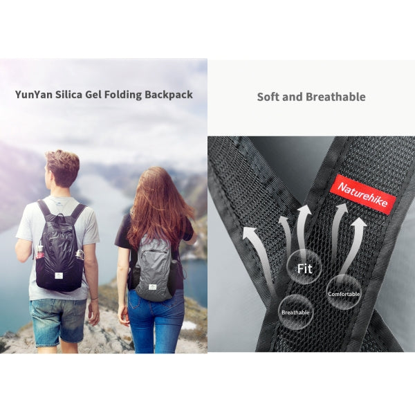 Naturehike Ultralight Folding Backpack (Yunyan) 18L in black. It is also known as the Naturehike Waterproof Backpack 18L.