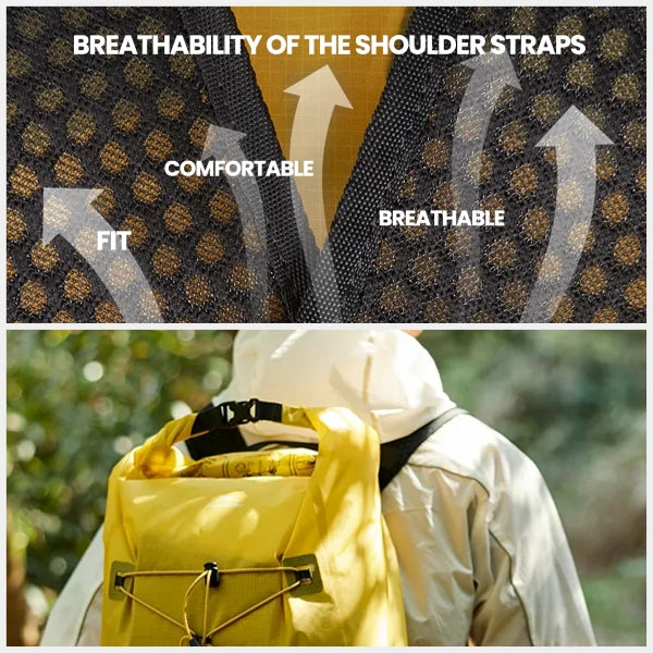 - Portability: The roll-top design allows for adjustment of the bag's size and a compact storage.