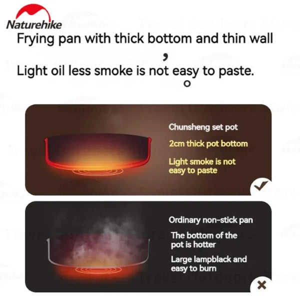 Naturehike Chun Sheng Ceramic Non-Stick Cookware Set, with the model number CNK2450CF013. It is a portable set designed for outdoor cooking and is recommended for 4-7 people.