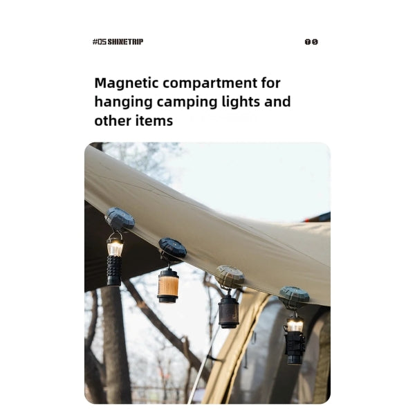 - Strong Magnetic Hold: The hook features a powerful N35 grade galvanized magnet, allowing it to securely attach to iron surfaces and tent fabrics.